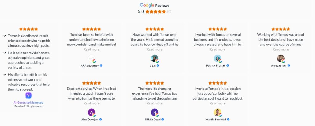 The support Tomas gives as a life coach is fantastic, you can tell that he genuinely cares about his clients. He’s worked his ass off to support me in working my ass off. Working with Tomas has been life-changing for me. Her journey is an inspiration to me and I’m sure will inspire you as well.